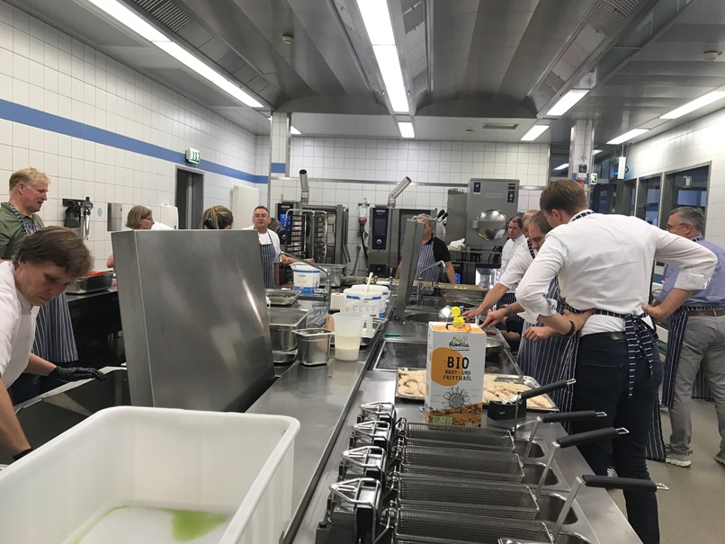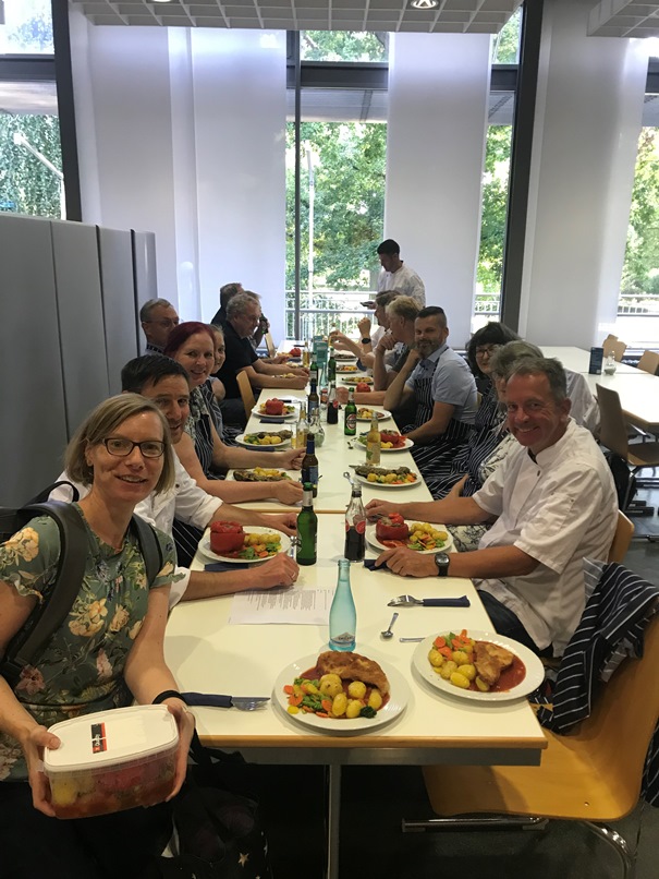 Wer viel kochen will, benötigt auch viele Köche und Köchinnen, oder...; Es war auf jeden Fall ein phantastisches Erlebnis, unter der Führung und Anleitung von Chefkoch Nico Steinweg und seinem Team. innerhalb kürzester Zeit am 27.08.2024 im Betriebsrestaurant der PTB Braunschweig mit einem bunten Team an Chef-, Sous- und Hilfskochpersonal ausreichend Essen in hervorragender Qualität auf den Tisch zu bekommen (wir haben es "vorgetestet" und es uns schließlich auch verdient); hier die Beweis- und Bewerbungsfotos: